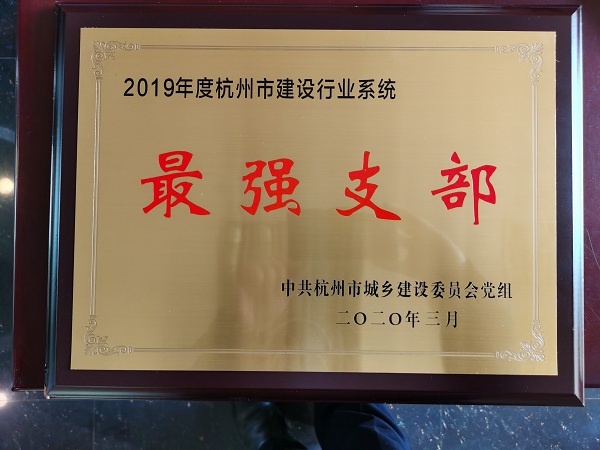 根据《在全市建设行业系统开展“最强支部”创建工作的实施方案》(杭建党委〔2018〕53号),杭州市城乡建设委员会举办第二期全市建设行业系统“最强支部”创建,经申报推荐、资格复审、评比展示,结合日常检查等层层筛选,我司党支部成功突围,被评为2019年度杭州市建设行业系统“最强支部”(机关、事业、两新类)。