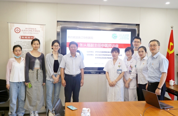 会后特别邀请了浙江骨伤医院临床支部书记、骨伤康复病区主任张从福副主任中医师进行健康宣教,围绕员工关心的颈椎、腰椎等职业病的困扰,开展了如何“预防颈椎病”的健康知识讲座。让现场的员工及时了解肩颈腰腿疼痛的特点,常见颈椎病、腰椎病的分类及有效的处理办法,同时进行了“骨保健操”的现场教学,在活动现场,还邀请了医院针灸推拿科副主任中医师张脉青,为公司员工进行了中医针灸、推拿、刮痧、拔罐等中医适宜技术体验服务。
